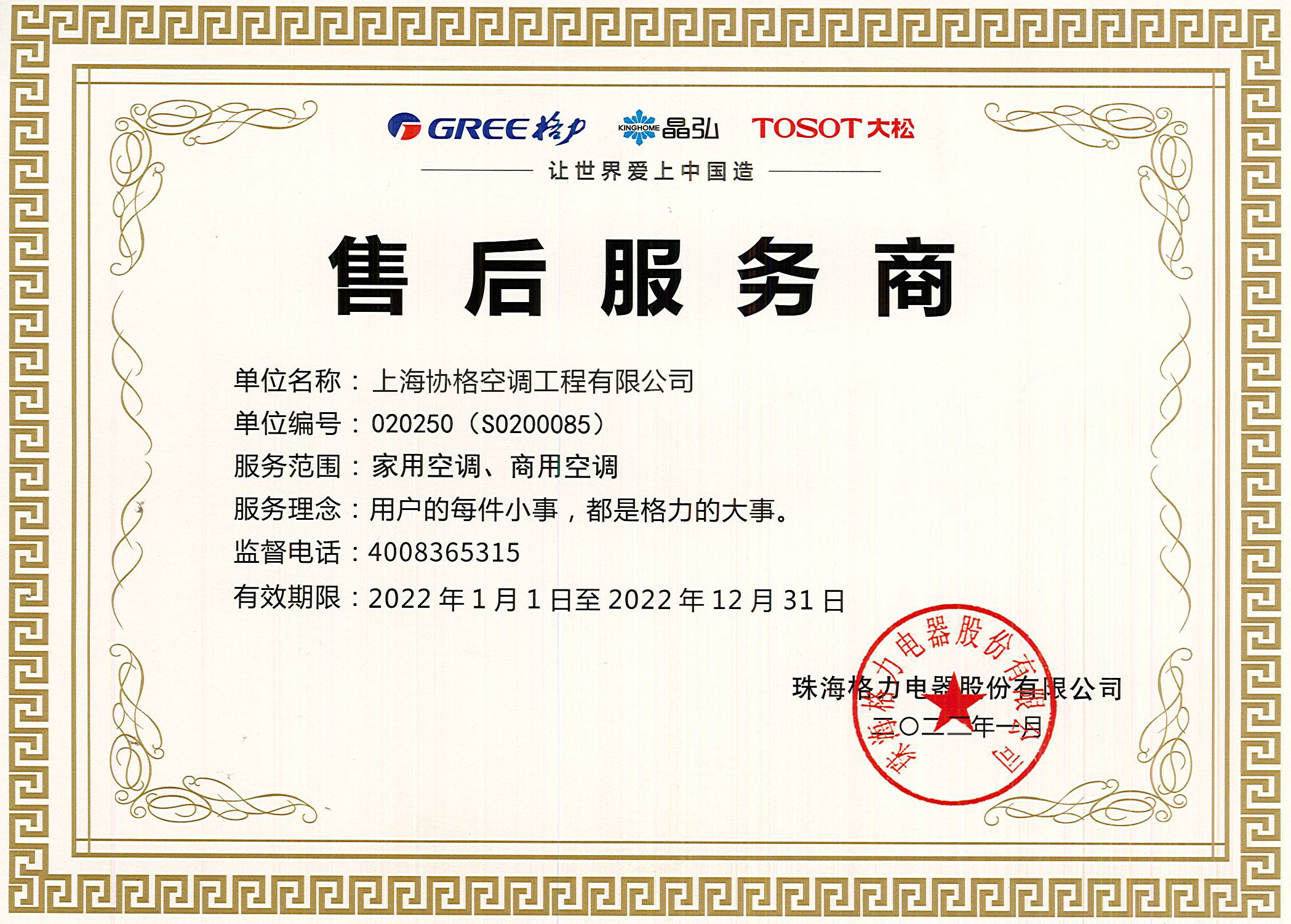 上海協格機電科技股份有限公司于2003年成立,是一家專業從事空調設計、銷售、安裝、維修、保養為一體的家用和商用空調專業公司。是格力空調上海地區的特約經銷商和技術服務中心,是上海市家用電器安裝、維修以及資質企業。公司擁有暖通技術、高級工程師、工程安裝等多方面專業人才。公司常年以來堅持客戶利益至上的原則,設計、選材、安裝,力求精益求精,是上海地區格力授權服務商。